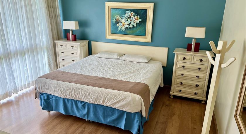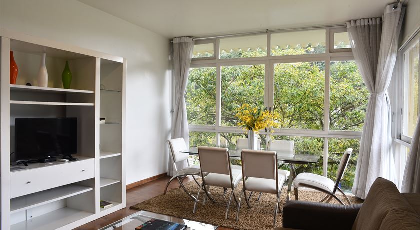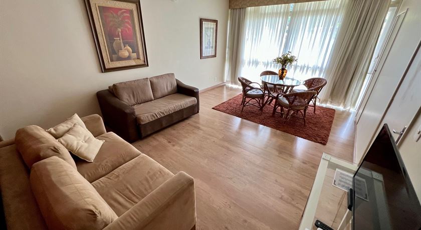 Sala com 01 sofá bibox, ar condicionado, cofre eletrônico, TV via satélite e telefone. Capacidade máxima de 04 pessoas. Enxoval completo de cama e banho e amenities (sabonete, xampu e condicionador).Possui acesso por escadas cerca de 60 degraus e possibilidade de estacionar carro de passeio próximo a acomodação.